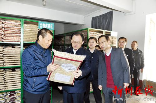 圖為市委書記李俊明在市藥業(yè)集團調(diào)研。本報記者 劉紀森 攝