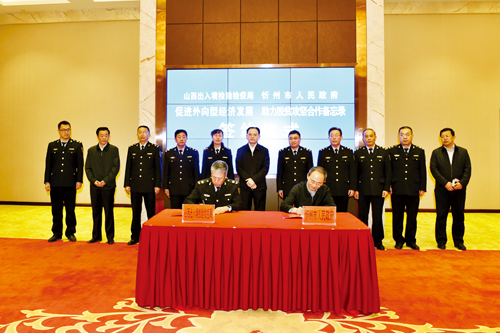 為進(jìn)一步貫徹落實(shí)省委省政府《關(guān)于全面擴(kuò)大開放的意見》,市政府和山西出入境檢驗(yàn)檢疫局本著“合作、服務(wù)、促進(jìn)、發(fā)展”的原則,經(jīng)認(rèn)真協(xié)商,就發(fā)揮各自職能優(yōu)勢,促進(jìn)農(nóng)產(chǎn)品擴(kuò)大出口、創(chuàng)建法蘭出口質(zhì)量安全示范區(qū)以及支持五臺山機(jī)場航空口岸臨時對外開放等方面達(dá)成共識,建立合作機(jī)制,促進(jìn)我市對外開放和外向型經(jīng)濟(jì)發(fā)展,助力脫貧攻堅。具體合作事項(xiàng)包括:一、促進(jìn)農(nóng)產(chǎn)品擴(kuò)大出口。確定重點(diǎn)幫扶產(chǎn)業(yè),創(chuàng)建出口食品農(nóng)產(chǎn)品質(zhì)量安全示范區(qū),培育出口企業(yè),打造知名品牌,拓展國際市場。二、助推出口工業(yè)品質(zhì)量提升。推動質(zhì)量品牌提升,推進(jìn)工業(yè)產(chǎn)品“三同”工程,加強(qiáng)國外技術(shù)性貿(mào)易措施應(yīng)對,強(qiáng)化公共檢測技術(shù)服務(wù)。三、支持五臺山機(jī)場航空口岸臨時對外開放。全力支持五臺山機(jī)場對外開放口岸平臺建設(shè),科學(xué)規(guī)劃和建設(shè)五臺山機(jī)場口岸檢驗(yàn)檢疫技術(shù)查驗(yàn)設(shè)施,做好口岸核心能力建設(shè)和動植物檢疫規(guī)范化建設(shè)各項(xiàng)工作,防范國外人類傳染病和動植物疫情疫病傳入,保障國門生物安全。