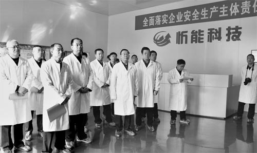 市委副書記王珍帶隊觀摩山西中科忻能科技有限公司鎂基電池項目一期工程。(趙菁 攝)