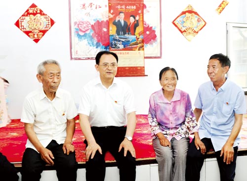 圖為省人大常委會(huì)副主任、市委書記李俊明在忻府區(qū)解原鄉(xiāng)大莊村慰問困難老黨員馬補(bǔ)田。(本報(bào)記者 劉紀(jì)森 攝)