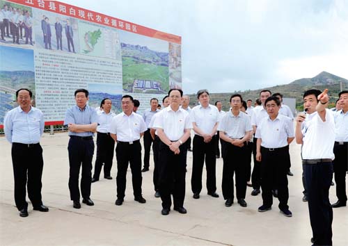 圖為省人大常委會(huì)副主任、市委書記李俊明帶領(lǐng)觀摩人員在五臺(tái)縣特色農(nóng)業(yè)產(chǎn)業(yè)扶貧陽(yáng)白現(xiàn)代農(nóng)業(yè)循環(huán)園區(qū)聽取情況介紹。本報(bào)記者 劉紀(jì)森 攝