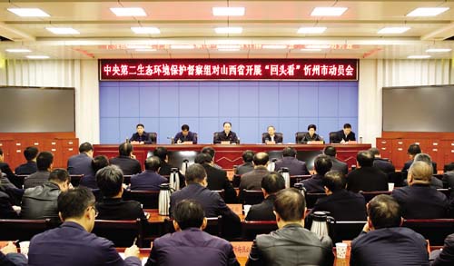 圖為中央第二生態(tài)環(huán)境保護督察組對山西省開展“回頭看”忻州市動員會會場。趙菁 攝