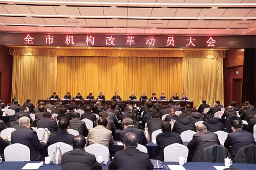 會(huì)議指出,要充分認(rèn)識(shí)深化黨和國(guó)家機(jī)構(gòu)改革的重大意義,增強(qiáng)推進(jìn)機(jī)構(gòu)改革工作的思想自覺(jué)、政治自覺(jué)和行動(dòng)自覺(jué)。深化黨和國(guó)家機(jī)構(gòu)改革是黨中央作出的重大決策部署,是推進(jìn)國(guó)家治理體系、治理能力現(xiàn)代化的一場(chǎng)深刻變革,要充分認(rèn)識(shí)推動(dòng)這場(chǎng)改革的歷史現(xiàn)實(shí)必然性,準(zhǔn)確把握這次改革的正確方向和著力點(diǎn),堅(jiān)持自覺(jué)推動(dòng)機(jī)構(gòu)改革工作的政治擔(dān)當(dāng)。我市機(jī)構(gòu)改革的工作重點(diǎn)已經(jīng)進(jìn)入到抓組織實(shí)施的重要階段,當(dāng)前又處歲末年初,頭緒多、任務(wù)重、時(shí)間緊。做好全市機(jī)構(gòu)改革工作,既是一項(xiàng)重大政治任務(wù),也是一次重大政治考驗(yàn)。各級(jí)黨委(黨組)要將其作為頭等大事來(lái)謀劃組織落實(shí)推動(dòng),全市各級(jí)各部門(mén)要提高政治站位,統(tǒng)一思想認(rèn)識(shí),牢記“四個(gè)意識(shí)”,堅(jiān)定“四個(gè)自信”,做到“兩個(gè)維護(hù)”,領(lǐng)導(dǎo)干部特別是“一把手”既要掛帥又要出征,強(qiáng)化責(zé)任擔(dān)當(dāng),狠抓任務(wù)落實(shí),確保改革落地。
