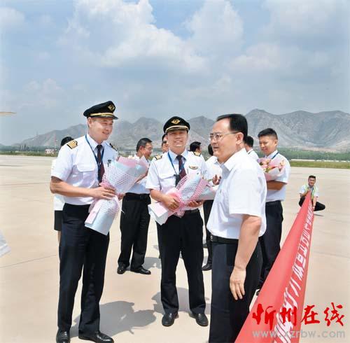 在候機(jī)樓舉行的簡短儀式上,省人大常委會副主任、市委書記李俊明宣布五臺山機(jī)場航空口岸臨時開放暨五臺山——曼谷航線正式通航,并與省市領(lǐng)導(dǎo)赴停機(jī)坪歡迎機(jī)組人員。市人大常委會主任王珍,市政協(xié)主席劉鋼柱,市委常委、秘書長崔建新,省交通運輸廳副廳長段新源,民航山西監(jiān)管局局長任超忠,太原海關(guān)副關(guān)長陸楊和山西出入境邊防檢查總站有關(guān)負(fù)責(zé)同志出席儀式。市政府常務(wù)副市長趙志堅,省商務(wù)廳副廳長王岫,山西航產(chǎn)集團(tuán)黨委書記、董事長、總經(jīng)理郝孝義,空軍定襄場站負(fù)責(zé)同志和市商務(wù)局等部門負(fù)責(zé)同志分別致辭或介紹情況。市政府秘書長郭寶厚主持儀式。