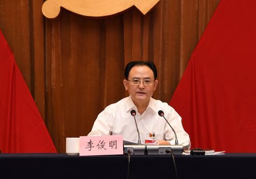 省人大常委會副主任、市委書記李俊明在中共忻州市委四屆七次全體會議上講話。本報記者 劉紀(jì)森 攝