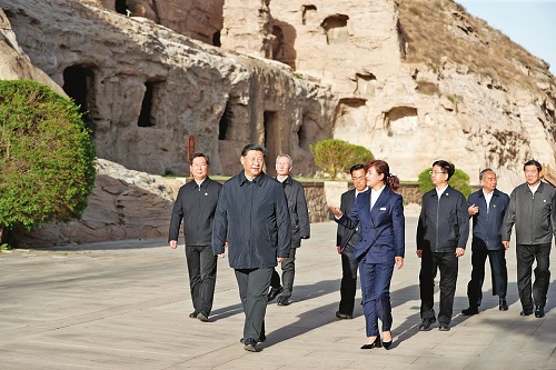 5月11日下午,習近平在大同市云岡石窟考察歷史文化遺產保護情況。