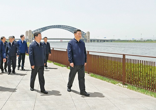 5月12日中午,習近平在汾河太原城區(qū)晉陽橋段考察汾河水治理及沿岸生態(tài)保護、城市環(huán)境建設等情況。