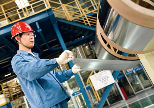 山西堅定貫徹落實習近平總書記關于創(chuàng)新驅(qū)動、科教興國、人才強國的重大戰(zhàn)略思想,手撕鋼、碳纖維、碳化硅等技術創(chuàng)新取得重大突破。圖為太鋼集團生產(chǎn)車間正生產(chǎn)手撕鋼。該公司2018年研發(fā)的寬幅精密帶鋼箔材(厚度0.02毫米,寬640毫米)成為世界首創(chuàng),因其厚度不到頭發(fā)直徑的1/3、比A4紙還要薄、可以用手輕易撕開,被形象地稱為“手撕鋼”。 山西省委宣傳部供圖