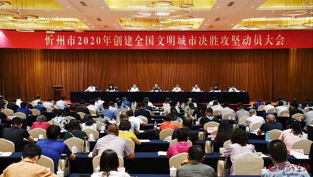 忻州市2020年創(chuàng)建全國(guó)文明城市決勝攻堅(jiān)動(dòng)員大會(huì)會(huì)場(chǎng)。 本報(bào)記者 劉紀(jì)森