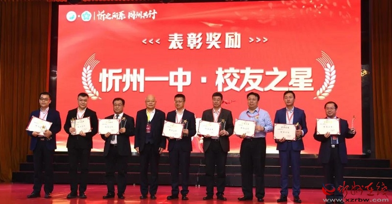 校領(lǐng)導(dǎo)為8位優(yōu)秀校友頒發(fā)忻州一中“校友之星”獎杯和忻州一中“好醫(yī)生”獎。劉紀(jì)森攝