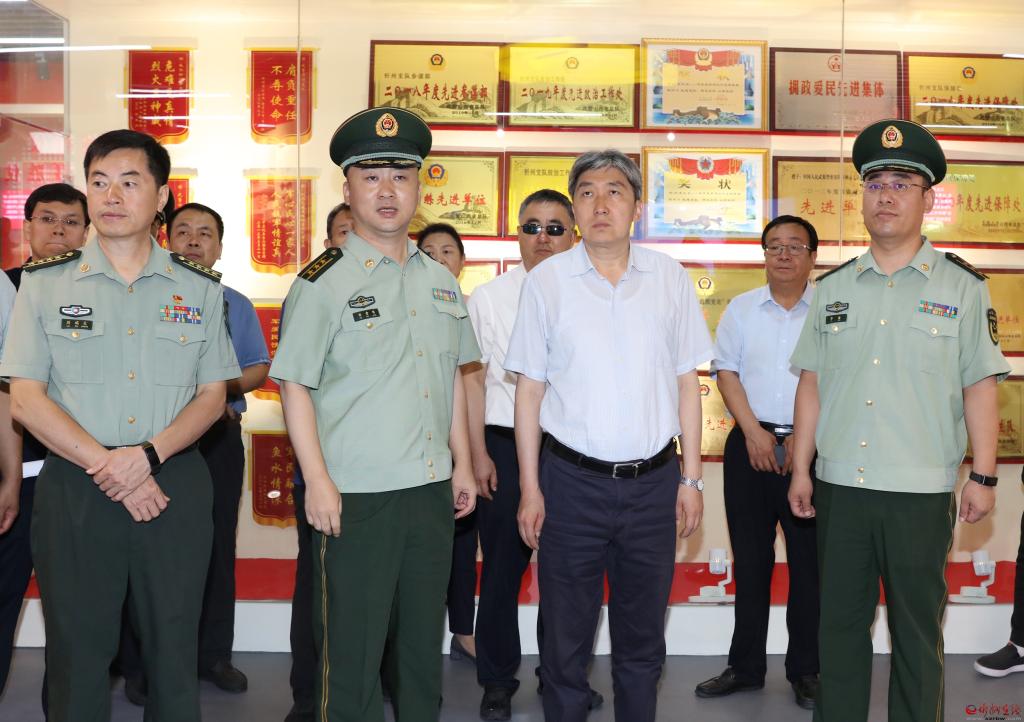 在武警忻州支隊(duì),朱曉東參觀支隊(duì)史展覽館,詳細(xì)了解支隊(duì)歷史沿革和發(fā)展情況。他指出,武警支隊(duì)是一支作風(fēng)優(yōu)良、能吃苦能戰(zhàn)斗能奉獻(xiàn)的隊(duì)伍,感謝大家在聚焦備戰(zhàn)打仗、深化拓展軍事斗爭準(zhǔn)備的同時(shí),積極參與和支持忻州經(jīng)濟(jì)社會(huì)發(fā)展,特別是在防火滅火、應(yīng)急救援、搶險(xiǎn)救災(zāi)中,官兵們第一時(shí)間響應(yīng),不畏艱險(xiǎn)、沖鋒在前,全力幫助處置險(xiǎn)情、整治環(huán)境,用實(shí)際行動(dòng)展現(xiàn)了人民子弟兵的本色擔(dān)當(dāng)。希望廣大官兵繼續(xù)加強(qiáng)訓(xùn)練,時(shí)刻準(zhǔn)備發(fā)揮職能,在保障全市安全穩(wěn)定方面作出更大貢獻(xiàn),在新時(shí)代新征程上再立新功。忻州將堅(jiān)持以習(xí)近平新時(shí)代中國特色社會(huì)主義思想為指導(dǎo),堅(jiān)定不移支持國防和軍隊(duì)現(xiàn)代化建設(shè),扎實(shí)推進(jìn)軍民融合發(fā)展,堅(jiān)定不移做好擁軍優(yōu)屬工作,不斷完善退役軍人服務(wù)保障體系,共同譜寫軍政軍民團(tuán)結(jié)新篇章。