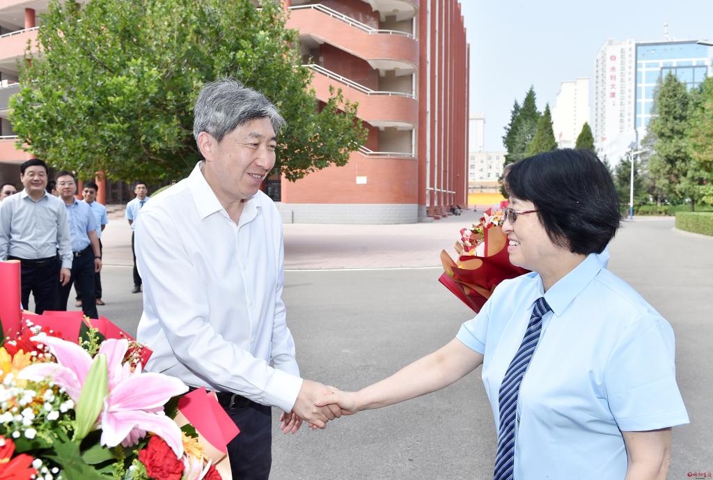 在第39個教師節(jié)到來之際,9月7日,市委書記朱曉東來到忻州市第一中學(xué)、忻州市第五中學(xué)和忻州市七一路小學(xué),看望慰問一線教師,代表市委、市政府向全市廣大教師和教育工作者致以節(jié)日祝賀和誠摯問候。他強(qiáng)調(diào),教育興則國家興,教育強(qiáng)則國家強(qiáng)。全市上下要深刻領(lǐng)會習(xí)近平總書記在中共中央政治局第五次集體學(xué)習(xí)時關(guān)于建設(shè)教育強(qiáng)國的重要講話精神,全面貫徹黨的教育方針,落實立德樹人根本任務(wù),以為黨育人、為國育才為根本目標(biāo),大力培養(yǎng)擔(dān)當(dāng)民族復(fù)興大任的時代新人。市委常委、秘書長溫建軍及市直相關(guān)部門負(fù)責(zé)同志參加。