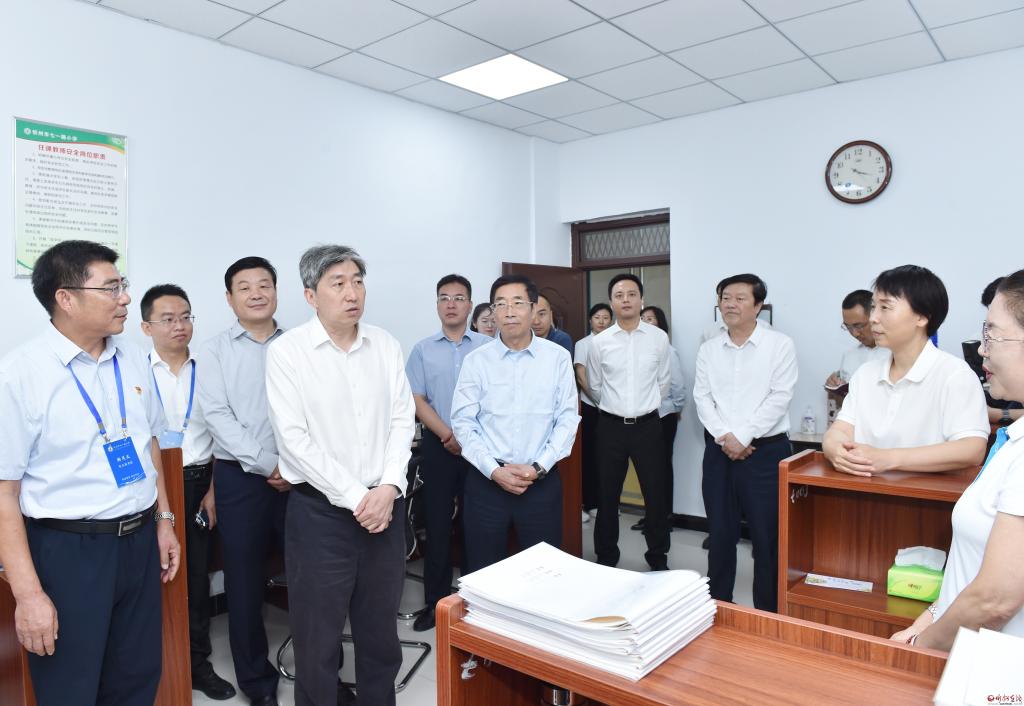 在忻州市第五中學(xué),朱曉東聽取學(xué)校有關(guān)工作介紹,詳細(xì)了解教學(xué)規(guī)模、師資力量和基礎(chǔ)設(shè)施等情況,同正在集體教研的一線教師親切交流。他指出,中學(xué)階段是青少年性格形成的關(guān)鍵時期,希望大家以更多的愛心、耐心和責(zé)任心,擔(dān)起鑄魂育人的光榮使命,示范引導(dǎo)學(xué)生樹立正確的世界觀、人生觀、價值觀。要加強(qiáng)學(xué)生體育鍛煉、美育熏陶、勞動實踐,全面提升學(xué)生身心健康素質(zhì),培養(yǎng)德智體美勞全面發(fā)展的社會主義建設(shè)者和接班人。