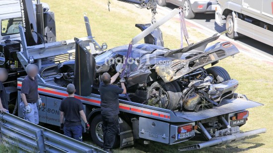 科尼塞克早上發(fā)布消息稱One:1打算在紐北刷新最快圈速紀(jì)錄。知情人表示,刷圈過程中,車輛在高速駛?cè)階denauer Forst彎時發(fā)生失控,車身撞跨賽道左側(cè)的護(hù)欄,進(jìn)而飛入草地,事故令One:1車身損毀嚴(yán)重,前保險杠折斷、擋風(fēng)玻璃破碎,尾部受損。