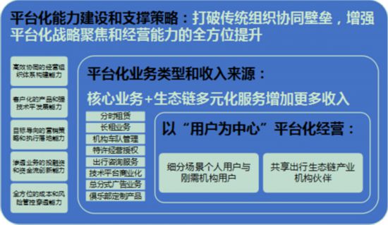 二是平臺(tái)化業(yè)務(wù)類型和收入來(lái)源,除了目前分時(shí)租賃、長(zhǎng)租外,機(jī)構(gòu)車隊(duì)管理、特許經(jīng)營(yíng)授權(quán)、出行咨詢服務(wù)、IT平臺(tái)應(yīng)用商業(yè)化、總分式廣告業(yè)務(wù)、會(huì)員俱樂(lè)部定制化產(chǎn)品等就是產(chǎn)業(yè)鏈?zhǔn)杖胄聛?lái)源。