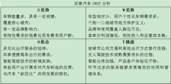 在共享汽車打破瓶頸前,可先通過(guò)SWOT分析法了解目前主要業(yè)務(wù)類型和運(yùn)營(yíng)模式,以此幫助企業(yè)將資源和行動(dòng)集中在自身的強(qiáng)項(xiàng)和有最多機(jī)會(huì)的地方。