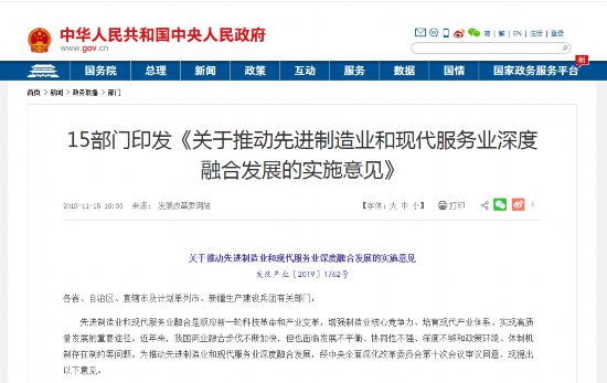 《關(guān)于推動(dòng)先進(jìn)制造業(yè)和現(xiàn)代服務(wù)業(yè)深度融合發(fā)展的實(shí)施意見(jiàn)》