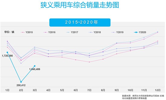 1季度,受春節(jié)假期大幅提前及疫情疊加沖擊,國內(nèi)狹義乘用車?yán)塾?jì)銷量為3014399輛,同比跌幅40.8%;但3月車市已現(xiàn)明顯復(fù)蘇勢頭,共售出狹義乘用車1045406輛,環(huán)比猛增317.5%,同比下滑40.4%,恢復(fù)至接近同期6成水平。