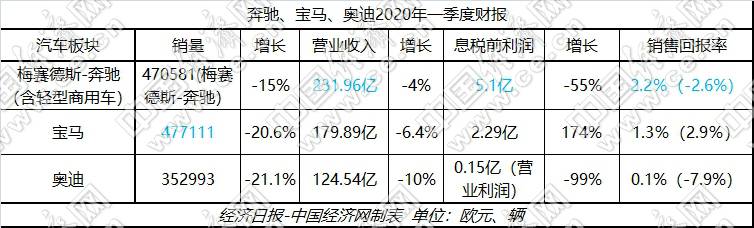 對比來看,寶馬雖未像奔馳一樣受到過多額外因素的影響,但疫情對其帶來沖擊依然不容小覷。一季度,寶馬汽車板塊銷量同比降幅超過兩成,營業(yè)收入也有著6.4%的下滑;不過,由于去年一季度14億歐元反壟斷撥備金的“特別項目”,導致基數(shù)較低,寶馬今年一季度的息稅前利潤以及銷售回報率均實現(xiàn)正向增長。