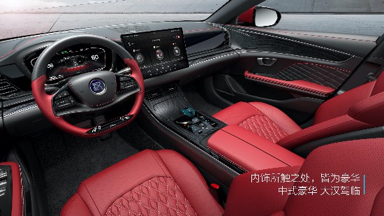 漢整體基于Dragon Face設(shè)計語言打造,外觀造型采用雙龍并型·性能美學設(shè)計語言,內(nèi)飾采用環(huán)抱式品格設(shè)計語言。內(nèi)飾設(shè)計,左右對稱的品字形布局營造出和諧大方的中式豪華內(nèi)涵。內(nèi)飾材質(zhì)工藝、色彩紋理把握有度,Nappa真皮、天然真木、真鋁等高級材質(zhì)恰到好處的使用。