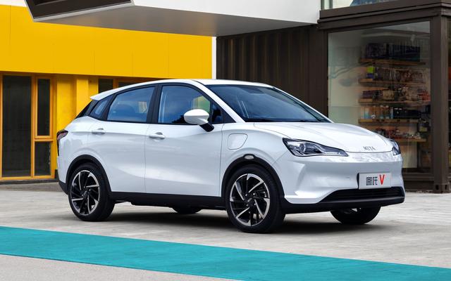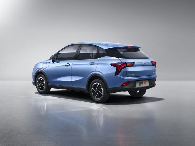 在外觀設(shè)計上,哪吒V整車外觀采用海豚流線低風(fēng)阻造型,下壓式的車頭設(shè)計、封閉式的前格柵,配合幾何波紋狀的下進(jìn)氣格柵。哪吒V車長4070mm,寬1690mm,高1540mm, 軸距2420mm。