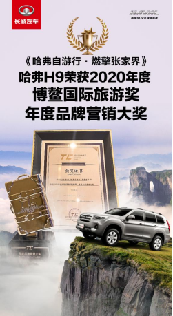 11月21日,中國·博鰲國際旅游獎(TC獎)揭曉,《哈弗自游行 燃擎張家界》項目榮獲2020年度中國·博鰲國際旅游獎年度品牌營銷獎。哈弗H9與張家界政府簽署的戰(zhàn)略合作協(xié)議,圍繞自駕游出行場景,合力打造“最佳自駕游目的地”。