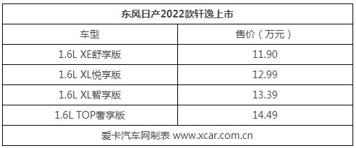 現(xiàn)款在售的軒逸為第14代車型,2022款軒逸延續(xù)了現(xiàn)款設(shè)計的同時,針對配置進行調(diào)整,頂配車型的售價也由14.3萬元調(diào)整至14.49萬元,價格上調(diào)了1900元。