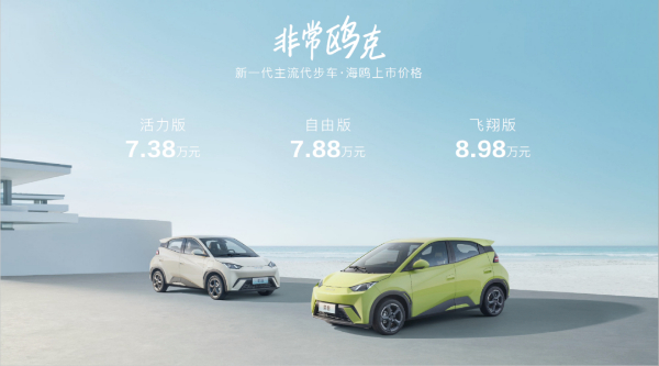 4月26日,比亞迪海鷗正式上市,售價(jià)區(qū)間為7.38萬(wàn)元-8.98萬(wàn)元。海鷗擁有305km和405km兩種續(xù)航里程(CLTC綜合工況)。4安全氣囊、ESP、快充等十二項(xiàng)全系標(biāo)配。不僅補(bǔ)強(qiáng)了海洋網(wǎng)的產(chǎn)品矩陣,更成為比亞迪沖擊全新市場(chǎng)空間的生力軍。上市期下訂的用戶,可享包括金融、養(yǎng)護(hù)、免費(fèi)安裝充電樁等多重權(quán)益好禮。