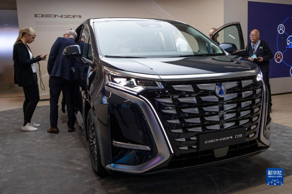 9月4日,在德國慕尼黑國際車展媒體預展上,人們在比亞迪品牌發(fā)布會現(xiàn)場體驗騰勢D9汽車。