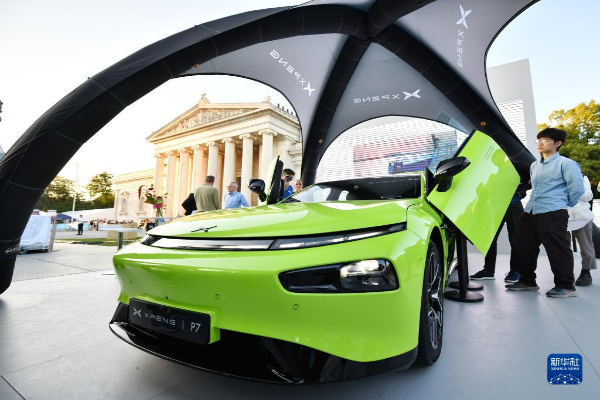 9月5日,人們在德國慕尼黑國際車展的城市公共展示區(qū)參觀小鵬汽車。