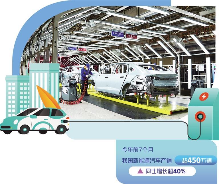 新能源汽車是全球汽車產業(yè)轉型升級、綠色發(fā)展的主要方向,也是我國汽車產業(yè)高質量發(fā)展的戰(zhàn)略選擇。今年前7個月,我國新能源汽車產銷超過450萬輛,同比增長超過40%。其中,出口63.6萬輛,同比增長1.5倍,成為我國經濟一個強勁增長點。