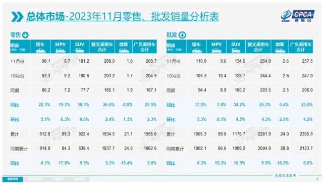 對(duì)于后期車市,乘聯(lián)會(huì)表示,今年12月是小月,元旦休假有兩天在12月。12月有21個(gè)工作日,相對(duì)2022年12月的22個(gè)工作日少一天,加之年末最后兩天休假,預(yù)計(jì)今年部分年銷量將結(jié)轉(zhuǎn)到明年,這必將對(duì)2024年的開門紅有很好的支撐效果,也有利于明年經(jīng)濟(jì)增長(zhǎng)。