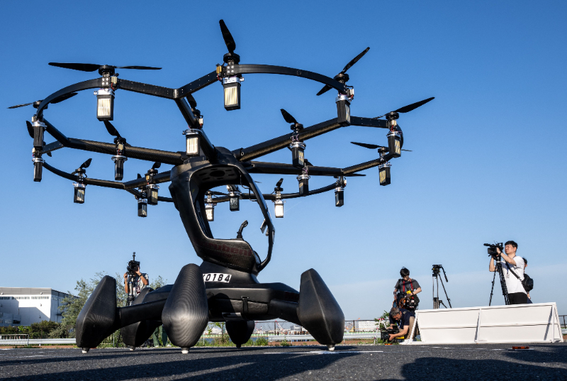 5月17日,人們?cè)谌毡緰|京拍攝“飛行汽車”Hexa。新華社/法新