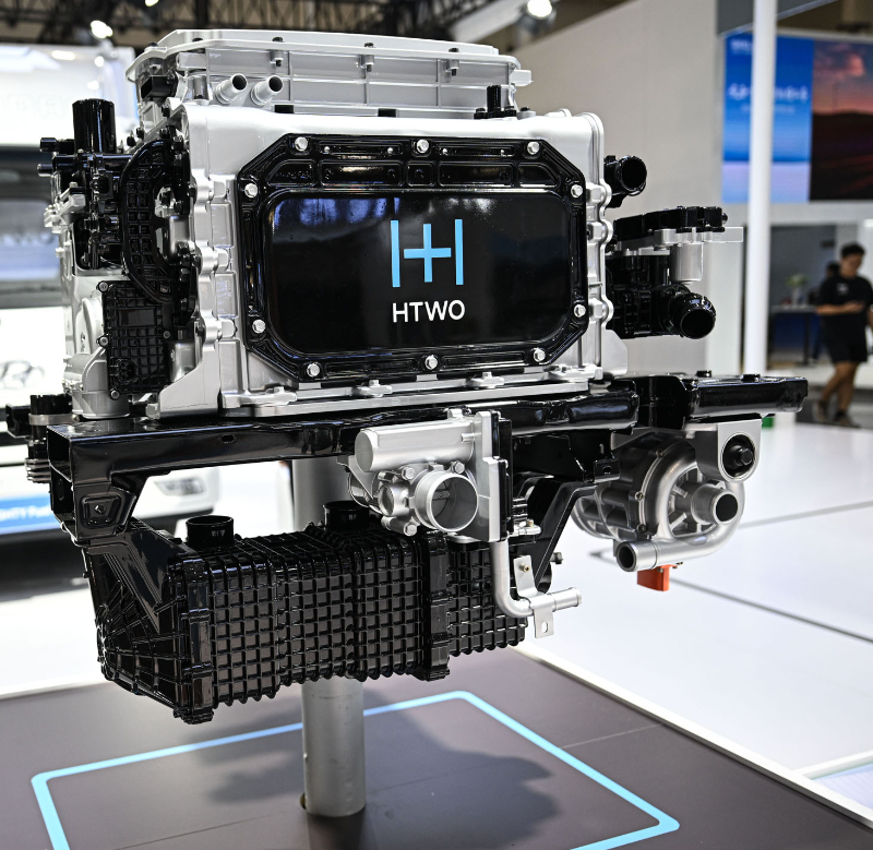 圖為在現(xiàn)代汽車(chē)集團(tuán)展臺(tái)拍攝的氫燃料電池系統(tǒng)。新華社記者 蒲曉旭 攝