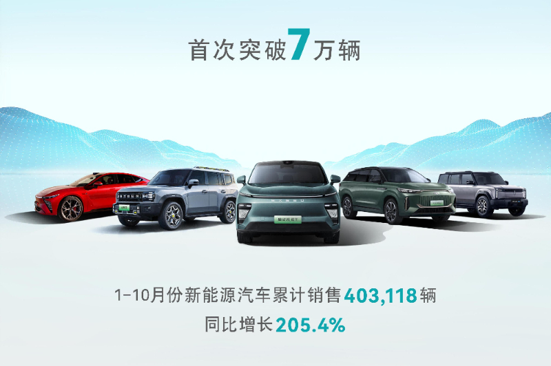 奇瑞控股集團(tuán)發(fā)布10月銷(xiāo)量快報(bào),集團(tuán)總銷(xiāo)量272,155輛,同比增長(zhǎng)35.9%,其中新能源銷(xiāo)量71,330輛,同比增長(zhǎng)342.1%,首次突破7萬(wàn)輛大關(guān),創(chuàng)造單月新能源銷(xiāo)量歷史新高。