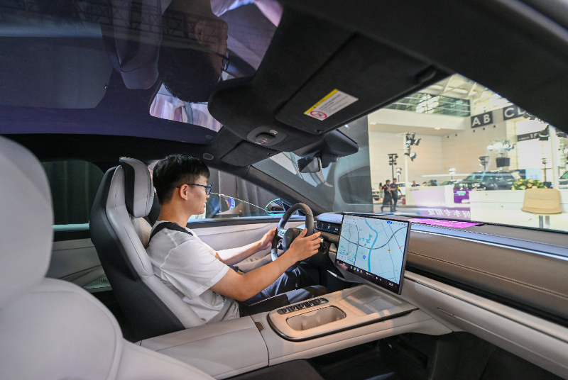 觀眾在2024世界智能產業(yè)博覽會現場靜態(tài)體驗一款智能網聯電動汽車(6月22日攝)。新華社記者 孫凡越 攝