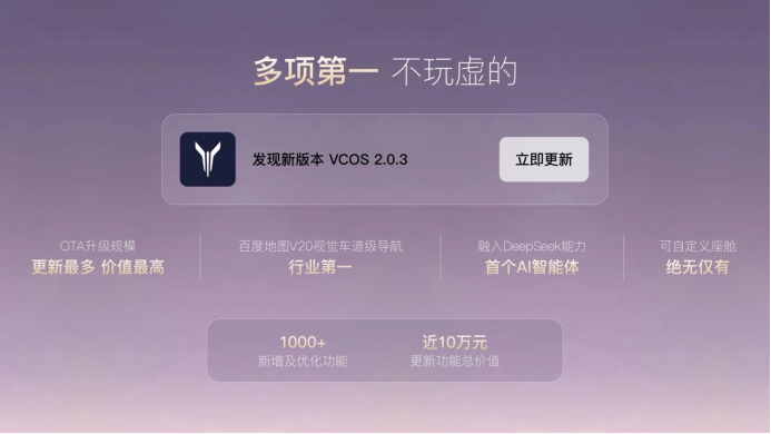 值得注意的是,此次OTA也是一次“貴”的空中升級(jí):不僅涵蓋AI技術(shù)、語(yǔ)音交互、車(chē)手生態(tài)等軟件躍升,電池管控技術(shù)等硬件驅(qū)動(dòng),倘若以燃油車(chē)更新升級(jí)計(jì)算,讓此次OTA升級(jí)折合市場(chǎng)價(jià)價(jià)值近十萬(wàn)元。