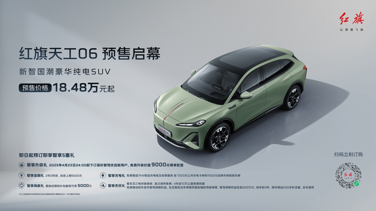天工06定位新智國潮豪華純電SUV,除搭載了與天工05相同的司南智駕系統(tǒng)和靈犀座艙外,還配備了專屬超級適時智能四驅(qū)系統(tǒng),擁有毫秒級的四驅(qū)介入響應,既可為用戶提供卓越的四驅(qū)駕乘體驗,又能讓用戶享受兩驅(qū)的極低電耗。此次紅旗品牌智能體驗日天工06正式開啟預售,預售價格18.48萬元起,并帶來豐厚的“智享五重禮”預訂權(quán)益。
