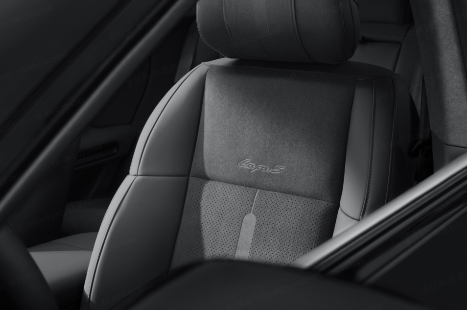 內(nèi)飾配色提供速域紫、馳影灰、競速灰三種選擇,速域紫夜色霓虹與尾焰的顏色,極具時尚與運動感;馳影灰靈感源于賽道柏油的中性灰調(diào),理性而不平庸;競速灰質(zhì)感運動、出眾,采用5.54㎡仿麂皮超纖絨與Nappa全粒面真皮拼接,座椅上“延伸賽道”紋理與“Lafa5”專屬字標燙印,在細節(jié)處彰顯豪華運動質(zhì)感。