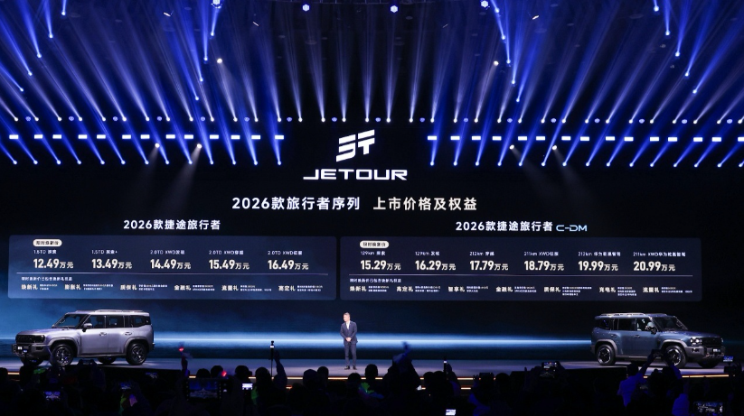 央廣網(wǎng)北京11月18日消息(記者董楠)11月17日,“旅行者之夜暨捷途汽車第四屆旅行+大會”于北京雁棲湖國際會展中心舉行。此次捷途發(fā)布了旅行者系列兩大核心車型——2026款捷途旅行者與捷途旅行者C-DM,發(fā)布會上,奇瑞汽車股份有限公司常務(wù)副總裁張國忠表示:“七年前,行業(yè)競爭日趨同質(zhì)化,捷途選擇了一條與眾不同的起跑線——聚焦‘旅行+’生態(tài)。捷途洞察到,汽車不僅是交通工具,更承載著用戶對自由、對探索、對新生活的向往。捷途堅信,在看似飽和的紅海之旁,總有通往用戶內(nèi)心的藍(lán)海。” 本屆大會上,捷途汽車正式宣布:旗下“旅行越野SUV”捷途山海T2,正式更名為“捷途旅行者C-DM”。 此次活動上2026款捷途旅行者和捷途旅行者C-DM正式上市。2026款捷途旅行者,限時煥新價12.49萬—16.49萬元,并提供6重購車好禮,捷途旅行者C-DM,限時煥新價15.29萬—20.99萬元,提供7重購車好禮。