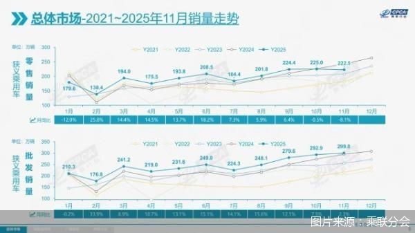車(chē)市正進(jìn)入平穩(wěn)發(fā)展階段。12月8日,中國(guó)汽車(chē)流通協(xié)會(huì)乘用車(chē)市場(chǎng)信息聯(lián)席分會(huì)(以下簡(jiǎn)稱(chēng)“乘聯(lián)分會(huì)”)發(fā)布的數(shù)據(jù)顯示,2025年前11個(gè)月零售2148.3萬(wàn)輛,整體保持增長(zhǎng)。不過(guò),今年11月車(chē)市零售量同比、環(huán)比均出現(xiàn)下滑?!?1月乘用車(chē)市場(chǎng)銷(xiāo)量環(huán)比出現(xiàn)下降,是比較少見(jiàn)的?!背寺?lián)分會(huì)秘書(shū)長(zhǎng)崔東樹(shù)認(rèn)為,今年上半年,我國(guó)乘用車(chē)市場(chǎng)銷(xiāo)量實(shí)現(xiàn)較快增長(zhǎng),下半年車(chē)市增長(zhǎng)需回到合理、穩(wěn)定的狀態(tài)。車(chē)市進(jìn)入平穩(wěn)期有利于市場(chǎng)長(zhǎng)期穩(wěn)定發(fā)展,預(yù)計(jì)今年零售將增長(zhǎng)5%。