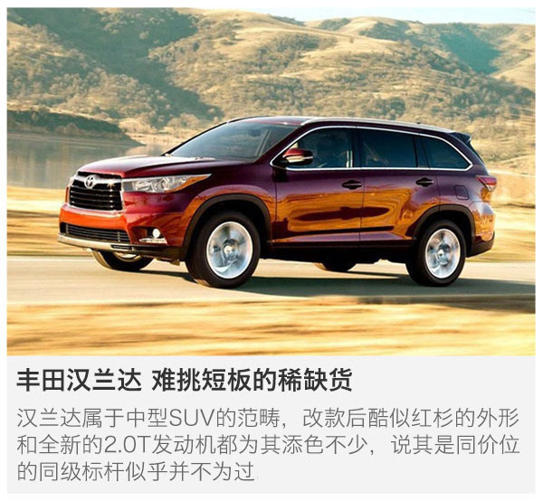 隨著進口大眾"Tiguan"上市和國產大眾途觀L的價格公布,讓眾多圍觀群眾為之咋舌,目前全新進口Tiguan和國產大眾途觀L可謂是目前最火爆的車型,前者上市價格26-39萬,后者前期上市的1.8T與2.0T車型的起步價格近28萬,頂配達到36萬;遠高于目前眾多同級別SUV,且按照之前的套路,加價也是可能的事情......因此,就不如去看看那些同級別對手們,至少要先等新車的熱乎氣兒澇澇再說。