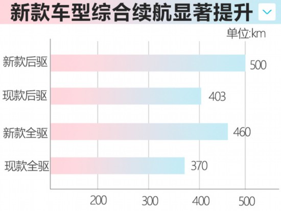 MARVEL X是榮威在2018年推出的一款A(yù)+級純電動SUV,在售車型包括兩電機(jī)后驅(qū)、三電機(jī)全驅(qū)兩款車型,綜合續(xù)航里程分別為403km、370km。日前,網(wǎng)上車市獲得了新款MARVEL X的相關(guān)消息,新車針對續(xù)航進(jìn)行了大幅提升,兩電機(jī)后驅(qū)、三電機(jī)全驅(qū)兩款車綜合續(xù)航分別可達(dá)500km、460km。