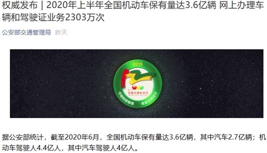 公安部公布,截至2020年6月,全國汽車保有量達(dá)2.7億輛,占機(jī)動車總保有量的75%。共有12個城市汽車保有量超過300萬輛,其中,北京超過600萬輛、成都超過500萬輛,分列前兩位。