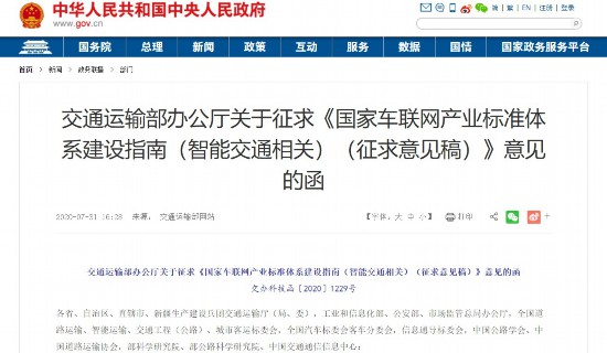 同日,交通運(yùn)輸部公開發(fā)函,廣泛征求對(duì)《國家車聯(lián)網(wǎng)產(chǎn)業(yè)標(biāo)準(zhǔn)體系建設(shè)指南(智能交通相關(guān))(征求意見稿)》(以下簡稱《征求意見稿》)的意見。其中,對(duì)進(jìn)一步明確標(biāo)準(zhǔn)制修訂重點(diǎn),以及形成統(tǒng)一、協(xié)調(diào)的國家車聯(lián)網(wǎng)產(chǎn)業(yè)標(biāo)準(zhǔn)體系架構(gòu)作出部署。