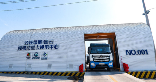 這其中,有聚焦礦山(能源)場(chǎng)景的換電重卡產(chǎn)品,其不僅定制打造鐵路干線+新能源重卡接駁、鐵路干線+專用線運(yùn)輸、新能源重卡運(yùn)輸?shù)娜N綠色運(yùn)輸模式,還實(shí)現(xiàn)了國內(nèi)首例大宗物資在市內(nèi)通過“鐵路干線+新能源重卡接駁”的全過程零排放綠色運(yùn)輸,并交付公鐵綠鏈?zhǔn)褂?;有聚焦城市物流及末端配送?chǎng)景的智藍(lán)新能源純電動(dòng)輕卡、VAN類產(chǎn)品,并在湖南區(qū)域完成上市發(fā)布;還有已經(jīng)交付房山區(qū)政府、大興機(jī)場(chǎng)的新能源抑塵車和機(jī)場(chǎng)運(yùn)輸車等。