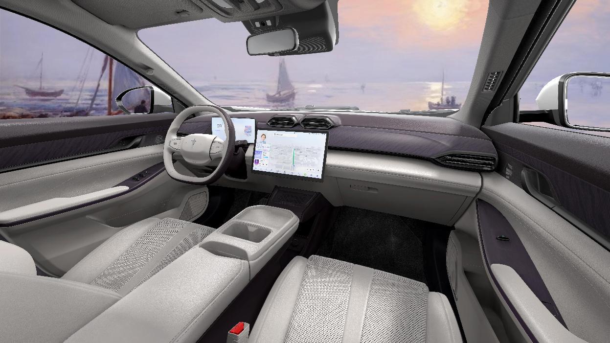 示界06以輕法式美學為設計基調。外觀采用鋒銳自由流線造型,琴弓弦月尾燈靈感源自小提琴弓造型,通過曲面轉折與立體光效,勾勒出如交響樂章般的光影韻律。車內則以日出印象為靈感,營造溫暖、松弛、充滿生活儀式感的視覺體驗。標配高通驍龍8155車規(guī)級芯片、電動可開啟全景天窗、主駕座椅加熱通風與記憶功能,擁有同級領先的NVH靜音水平,85%超軟PVC軟觸包覆,采用高溫粒子雙重烘烤工藝,TVOC釋放量優(yōu)于國標,全方位護航駕乘健康,滿足每一位駕乘者的舒適體驗。