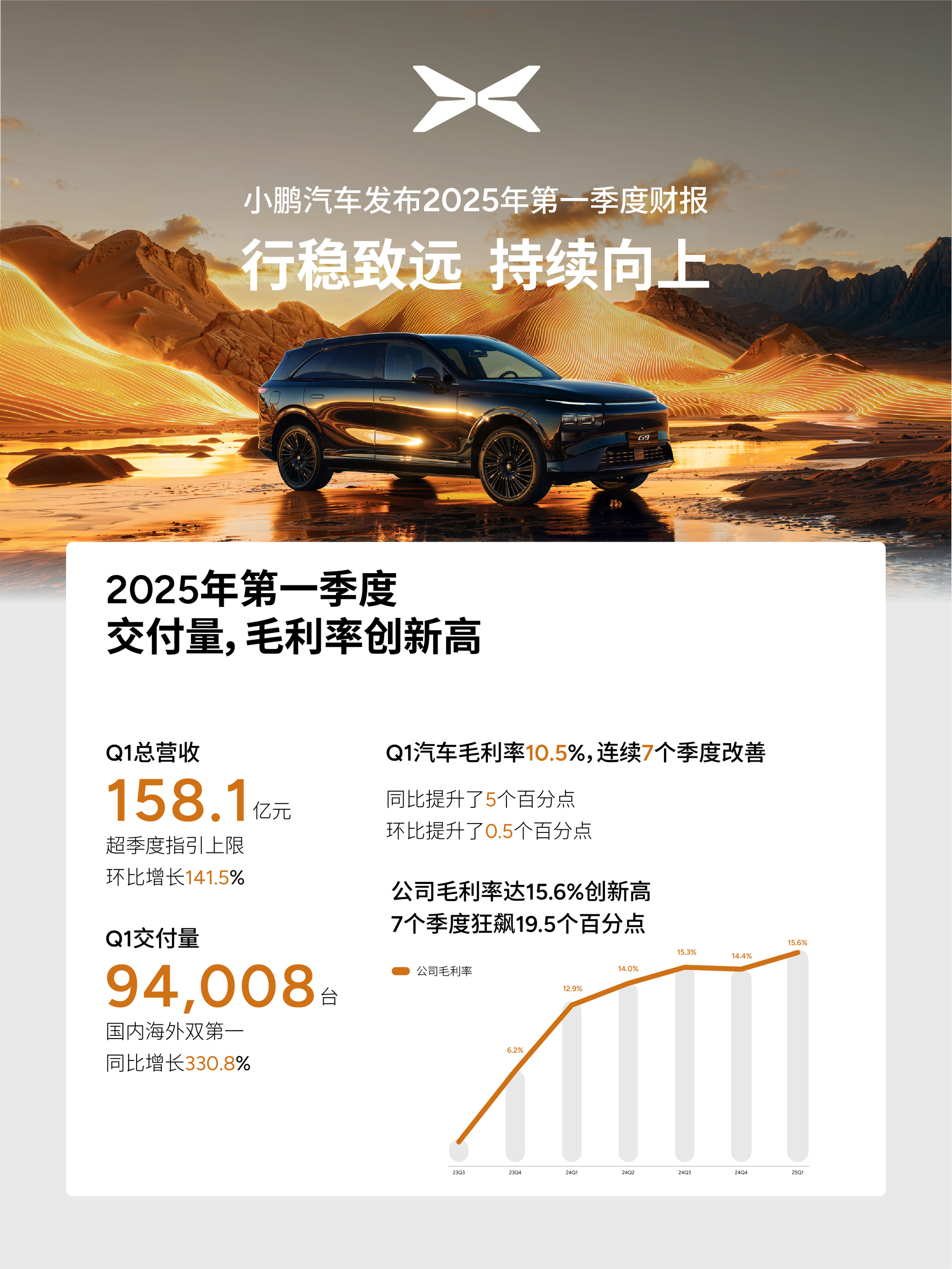 “在車市的傳統(tǒng)淡季,我們的單季交付再創(chuàng)歷史新高,成為新勢(shì)力車企銷量第一名。市場(chǎng)的積極反饋?zhàn)屛覀儗?duì)小鵬汽車的三年大產(chǎn)品周期信心更強(qiáng),我們將會(huì)堅(jiān)持行穩(wěn)致遠(yuǎn),持續(xù)打造爆款產(chǎn)品。”何小鵬表示。