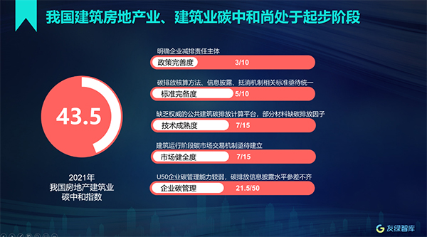 日前,由友綠智庫(kù)主辦的2021房地產(chǎn)建筑業(yè)碳中和指數(shù)暨2021《中國(guó)綠色地產(chǎn)發(fā)展報(bào)告》發(fā)布會(huì)在京舉行。會(huì)議深度解讀了房地產(chǎn)建筑業(yè)在“雙碳”領(lǐng)域的政策、技術(shù)、標(biāo)準(zhǔn)、市場(chǎng)和企業(yè)的應(yīng)對(duì)之策。
