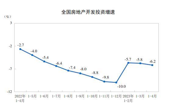 房地產開發(fā)投資完成情況,1—4月份,全國房地產開發(fā)投資35514億元,同比下降6.2%(按可比口徑計算);其中,住宅投資27072億元,下降4.9%。